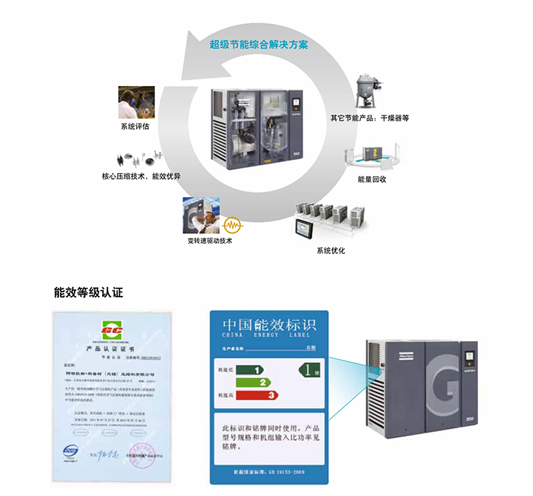 节能、低碳、环保是阿特拉斯·科普柯不断追求的目标,这不仅仅是一个口号。阿特拉斯·科普柯通过技术等各 个方面不懈的追求和对用户使用多方面的调查,提出了一个完整的系统性节能解决方案,即处处可节能。